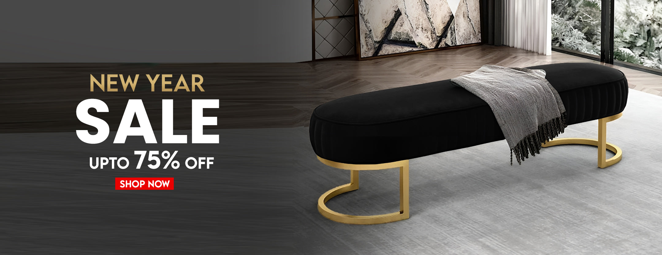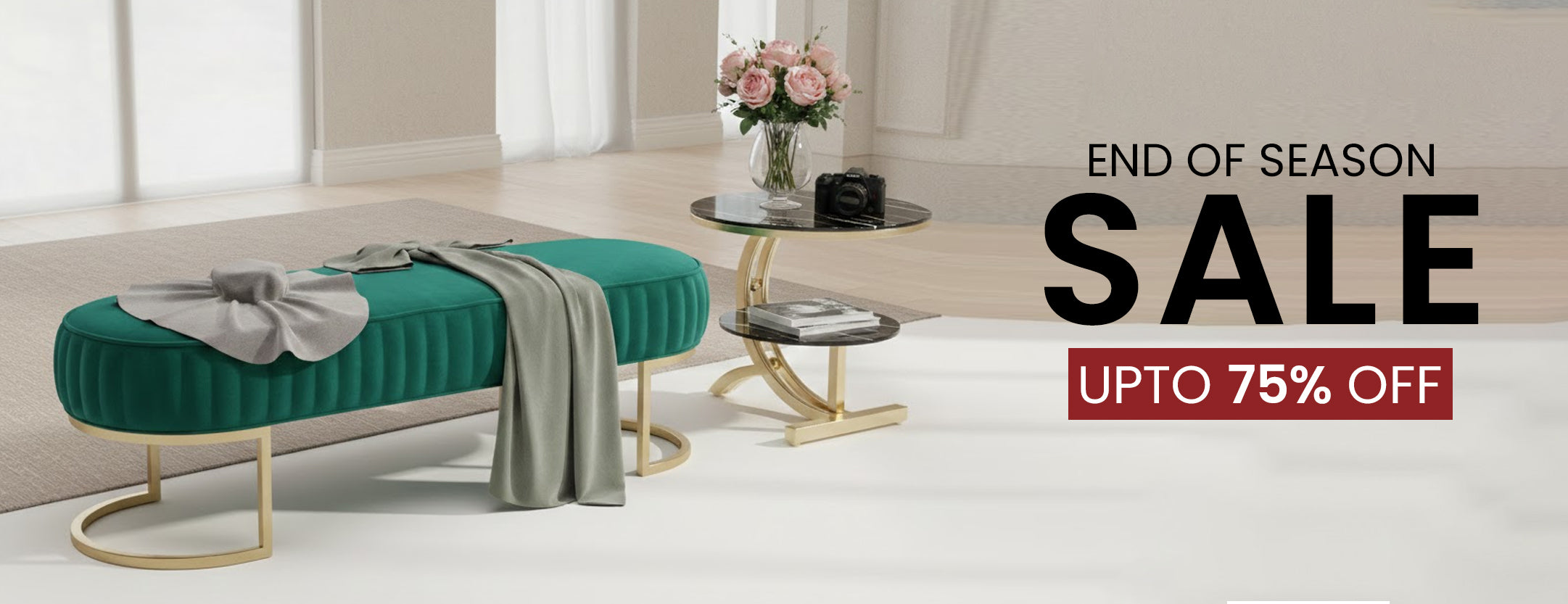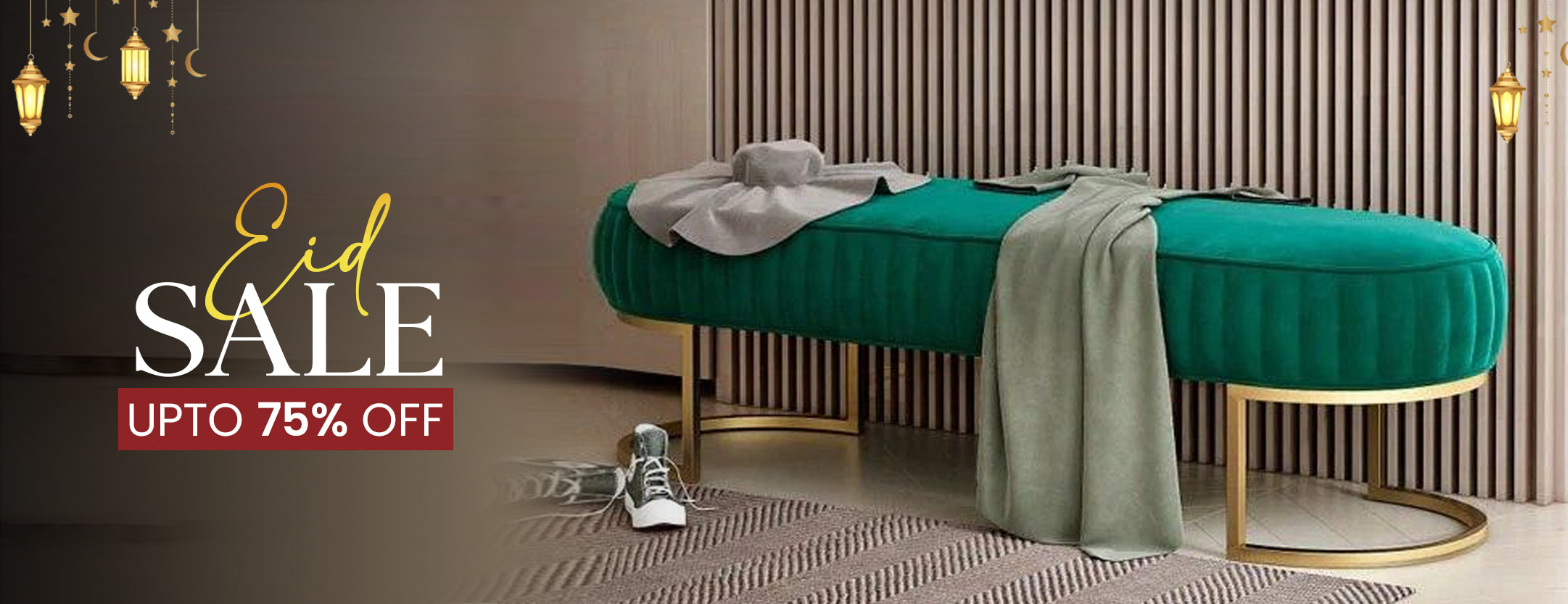2 Seater Luxury Pleated Wooden Stool With Steel Stand-846