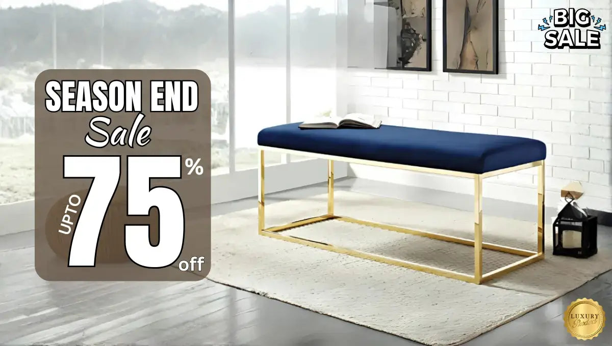 2 Seater Luxury Velvet Wooden Stool With Steel Stand-846