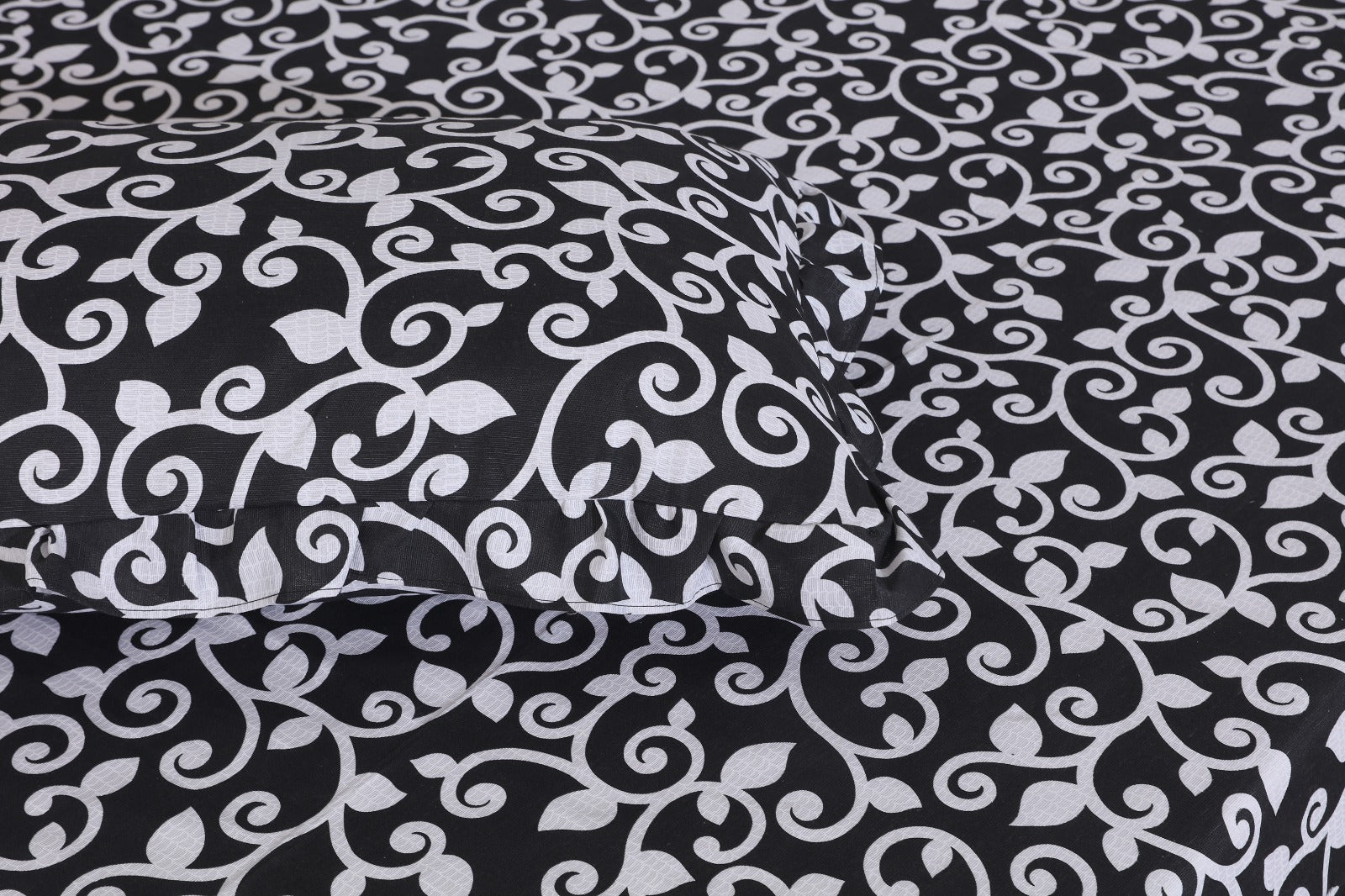 3 PCs Fitted Bed skirt with Pillow cover - 1140