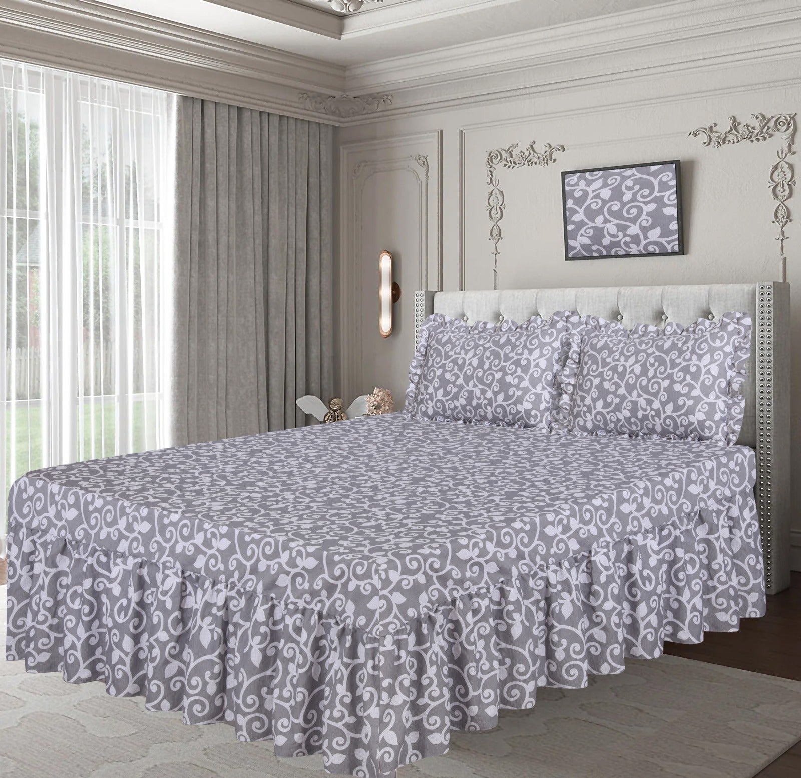 3 PCs Fitted Bed skirt with Pillow cover - 1144