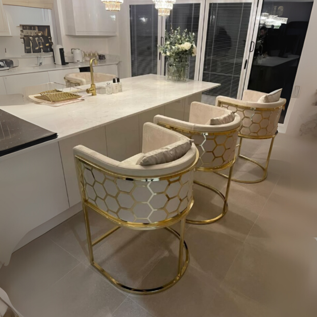 🎨 Modern Aesthetic: Elegant white velvet paired with golden accents – ideal for premium interiors.
