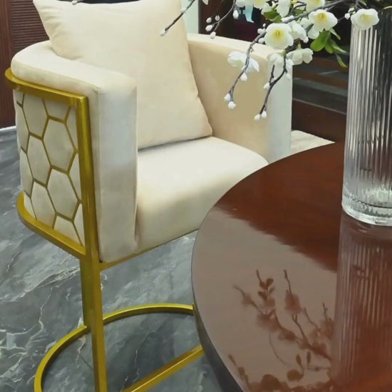 Elevate your living space with this luxurious Chair, designed to blend modern elegance with practical versatility. Crafted with a plush velvet cushion top and supported by a sleek brass-colored metal frame, offering both durability and timeless style.