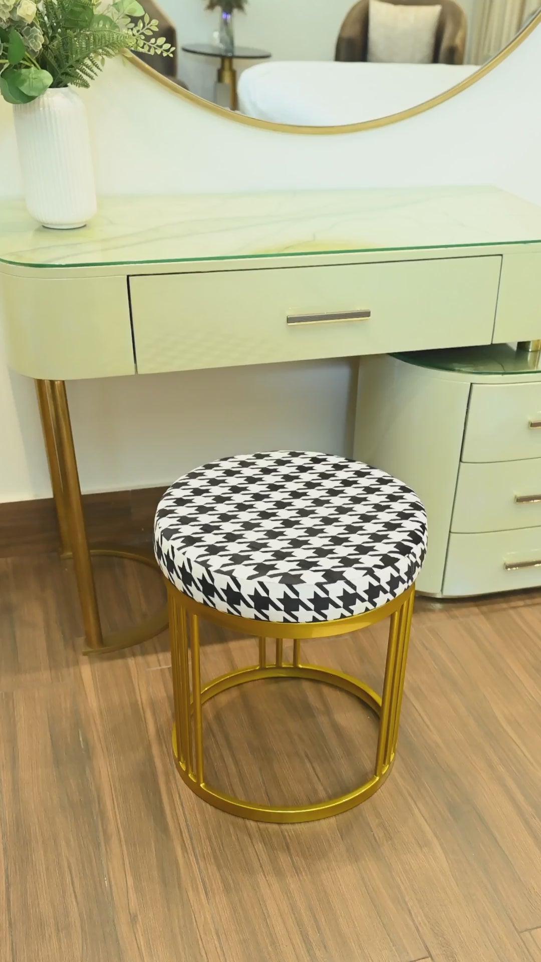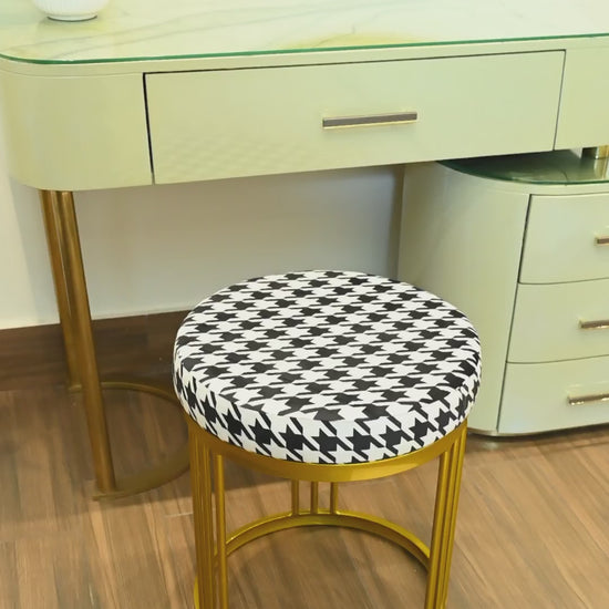Elevate your living space with this luxurious Stool Set, designed to blend modern elegance with practical versatility. Crafted with a plush velvet cushion top and supported by a sturdy wooden sheet base, the set rests on a sleek brass-colored metal frame, offering both durability and timeless style.